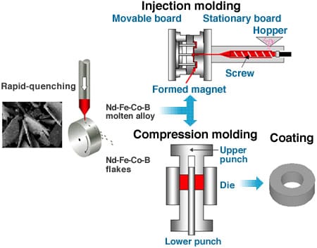The table below provides an overview of the major manufacturing steps involved in creating bonded magnets: